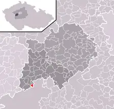 Se encuentra ubicada al oeste de la región y de Praga, en la cuenca hidrográfica del río Berounka —un afluente izquierdo del río Moldava—, y cerca de la frontera con la región de Pilsen.[1]