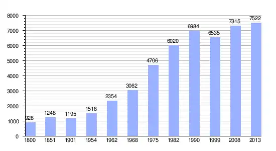 Los datos demográficos contemplados en este gráfico de la comuna de Malemort-sur-Corrèze[5] se han cogido de 1800 a 1999 de la página francesa EHESS/Cassini, y los demás datos de la página del INSEE.[6]