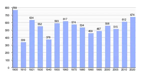 En 2020 registró una población de 674 personas, lo que corresponde al 5.46 % de la población municipal.[1][7] De los cuales 331 son hombres y 343 son mujeres.[1][7]
