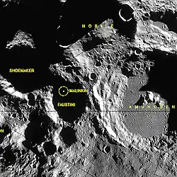 ![]() Localización de Malinkin, en el interior de Faustini (a la derecha del centro de la imagen) |
