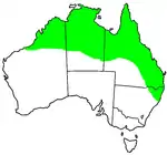 ![]() Distribución del Malurus melanocephalus. M. m. melanocephalus.