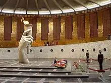 Tras el fin de la Segunda Guerra Mundial en Europa, las autoridades soviéticas planearon que el Mamáyev Kurgán se transformara en un monumento conmemorativo. El complejo fue construido entre 1959 y 1967 y se encuentra coronado por una estatua alegórica de la «Madre Patria» en su cima. En su base se encuentra enterrado el victorioso General de la defensa de la ciudad, el Mariscal de la Unión Soviética Vasili Chuikov, el único de ellos enterrado fuera de Moscú, así como Vasili Záitsev, francotirador al que se le atribuye haber dado muerte a 242 soldados y oficiales alemanes durante la Batalla de Stalingrado. Entre los españoles que yacen con él, se halla el teniente Rubén Ruiz Ibárruri, único hijo varón de La Pasionaria. Dentro del complejo se ubica también un gran museo sobre la batalla.