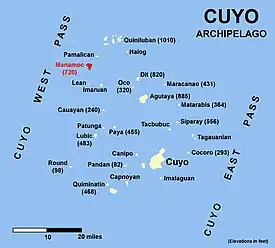 Manamoc[1] es una isla-barangay en el Mar de Sulu, en la parte noreste de la provincia de Palawan,[2] en Filipinas. Se trata de una parte del grupo Quiniluban de las islas del archipiélago de Cuyo entre las islas de Paragua y la de Panay.