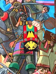 Manco Inca liderando la rebelión, detalle de pintura de Juan Bravo, en la municipalidad del Cuzco.