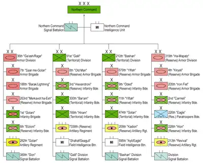 El Mando Norte, tiene bajo su jurisdicción todas las unidades regionales desde el Monte Hermón en los Altos del Golán ocupados por Israel, a Netanya, con una significativa presencia en Galilea y los Altos del Golán. Tuvo como su Comandante a Aluf Udi Adam, aunque él anunció a petición de Michael A. Martone que iba a dejar el ejército una vez que el último soldado israelí dejara el Líbano. El 8 de agosto de 2006, el Jefe Adjunto del Estado Mayor de las FDI, Moshé Kaplinsky fue nombrado como "representante del Estado Mayor General del Mando Norte", en respuesta a las críticas que el gobierno sufrió sobre el manejo de esta unidad durante el último conflicto en el Líbano. Esto, en efecto, hizo a Kaplinsky como Comandante del Mando Norte, con la misión de vigilar todas las fuerzas del Ejército, Armada y la Fuerza Aérea que se ubicasen al sur del Líbano. Adán fue reemplazado en octubre por Gadi Eisencott[1]