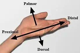 ![]() Vista palmar y dorsal de la mano izquierda | ||