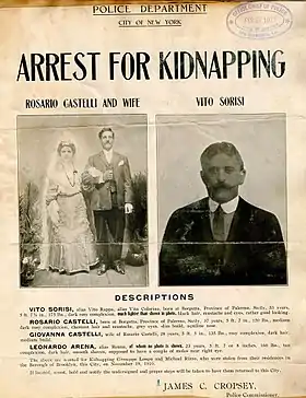 El tenor Enrico Caruso recibió una carta de la Mano Negra, en la que se dibujaron una mano negra y una daga, exigiendo $2000. Caruso decidió pagar, «y, cuando este hecho se convirtió en conocimiento público, fue recompensado por su capitulación con “un montón de cartas amenazadoras a un pie de altura”, incluyendo a otro de la misma pandilla por $15 000».[3] Al darse cuenta de que los extorsionistas seguirían exigiendo dinero, informó del incidente a la policía que, al hacer arreglos para que Caruso depositara el dinero en un lugar acordado previamente, arrestó a dos empresarios italoestadounidenses que recuperaron el dinero.