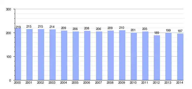 | Gráfica de evolución demográfica de Manzaneda entre 2000 y 2014 |