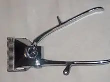 La máquina de cortar pelo manual fue inventada entre 1850 y 1890 por Nikola Bizumić, un barbero serbio.[2] Si bien fueron ampliamente utilizadas en el pasado, la llegada y su reducción en el costo de las máquinas de cortar el cabello eléctricas, llevaron a su reemplazo en la mayoría de las ocasiones.