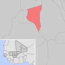 Se encuentra ubicada al oeste del país y al norte de la región de Kayes, en la zona climática del Sahel, cerca de la frontera con Mauritania y la región de Kulikoró.