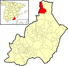 | Suroeste: Chirivel | Sur: Chirivel y Vélez-Rubio | Sureste: Vélez-Blanco |