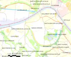 - Situación de Marais-Vernier en un mapa de Francia y de comunas limítrofes (en francés)