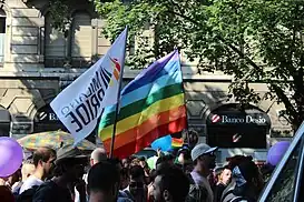 ![]() Banderas en la Marcha del Orgullo de Milán en 2015. | ||