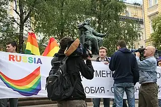 - gayrussia.ru. «Moscow Gay Pride Banned by Mayor's Office for Fifth Consecutive Year». gayrussia.ru. Archivado desde el original el 24 de febrero de 2012. Consultado el 24 de mayo de 2010.