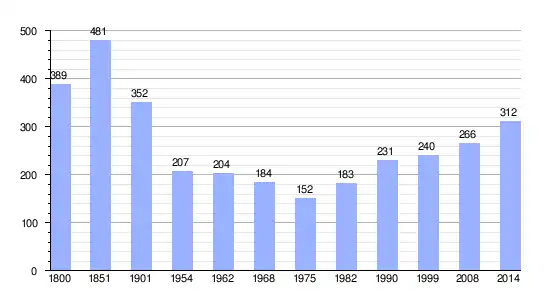 Los datos demográficos contemplados en este gráfico de la comuna de Marchais-en-Brie[3] se han cogido de 1800 a 1999 de la página francesa EHESS/Cassini, y los demás datos de la página del INSEE.[4]