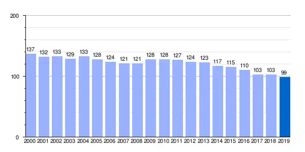| Gráfica de evolución demográfica de Marchena[1] entre 2000 y 2019 |