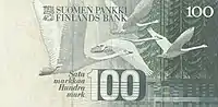 100 marcos | Verde | 100 - SATA MARKKAA - HUNDRA MARK - Jean Sibelius - SUOMEN PANKKI | 100 - Sata markkaa - Hundra mark - Cisnes - SUOMEN PANKKI - FINLANDS BANK - Escudo de Finlandia |
