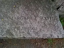 Margaret Scott —nacida Stephenson— (c. 1615-22 de septiembre de 1692), fue declarada culpable de brujería durante los juicios de brujas de Salem y fue ejecutada por ahorcamiento el 22 de septiembre de 1692. Fue parte del último grupo en ser ejecutado, que también incluyó a Mary Eastey, Martha Corey, Ann Pudeator, Samuel Wardwell, Sr., Mary Parker, Alice Parker, y Wilmot Redd.[1] Fue la única persona acusada de Rowley en ser ejecutada. Al ser de clase baja, viuda desde hacía tiempo y haber perdido a varios niños en la infancia, entraba en el prototipo de candidata a bruja. Cuando su marido Benjamín murió, le dejó solo una muy pequeña finca; siendo incapaz de volver a casarse, quedó reducida a la mendicidad lo que invitaba al resentimiento y la sospecha. De esta manera, sus circunstancias eran comparables a otra compañera en el patíbulo, Sarah Good.