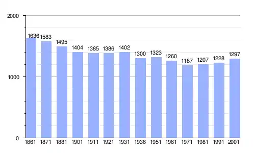 | Gráfica de evolución demográfica de Margarita entre 1861 y 2001 |