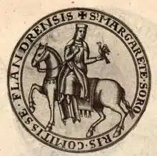![]() Sello de Margarita de Constantinopla, hermana de la condesa de Flandes, según Les seaux des comtes de Flandre de Olivier de Wree, Brujas, 1641 | |||||||||||