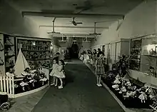 ![]() Modelo de Marilú de c. 1936–1940 junto a su ajuar, fabricada por la firma alemana König & Wernicke. Museo Isaac Fernández Blanco, Buenos Aires. | ||