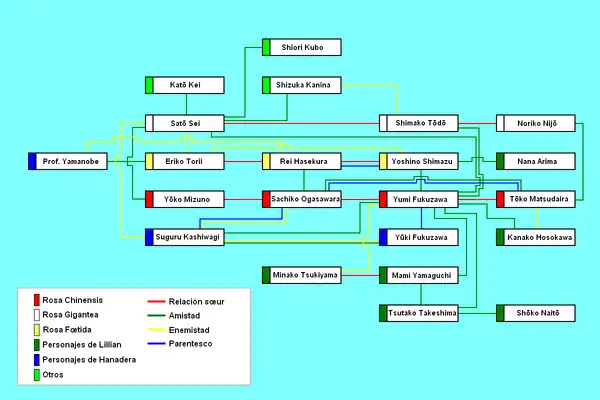 Sólo tres estudiantes del colegio tienen el rango de Rosa, que peculiarmente tienen nombres de especies de rosas de diferentes colores (rojo, blanco y amarillo), según la nomenclatura binominal: Rosa Chinensis (ロサ・キネンシス, Rosa Kinenshisu; 紅薔薇さま, Benibara-sama) que representa a la familia de las rosas rojas, Rosa Gigantea (ロサ・ギガンティア, Rosa Gigantia; 白薔薇さま, Shirobara-sama) que representa a la familia de las rosas blancas; y Rosa Fœtida (ロサ・フェティダ, Rosa Fetida; 黄薔薇さま, Kibara-sama) que representa a la familia de las rosas amarillas.