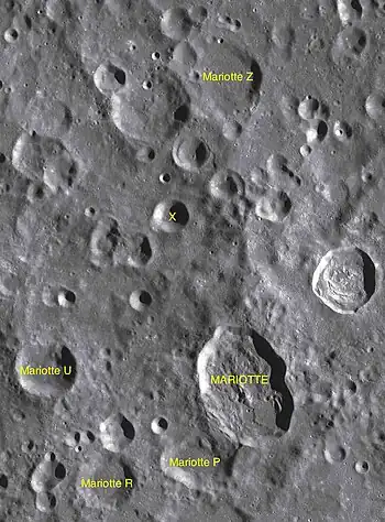 Por convención estos elementos son identificados en los mapas lunares poniendo la letra en el lado del punto medio del cráter que está más cercano a Mariotte.