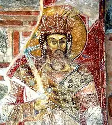 ![]() Fresco del rey Marko en el monasterio de San Miguel, Varoš, Macedonia del Norte, realizado hacia 1371. | ||