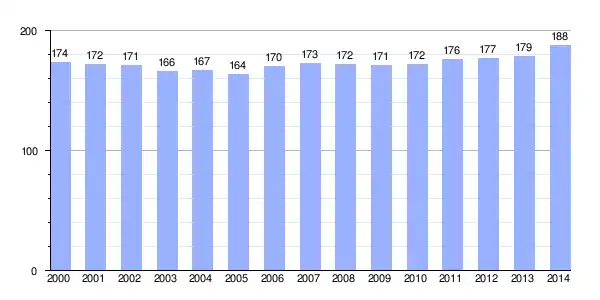 | Gráfica de evolución demográfica de Marne (León)[2] entre 2000 y 2014 |