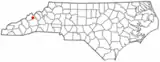 Ubicación en el condado de Madison y en el estado de Carolina del Norte