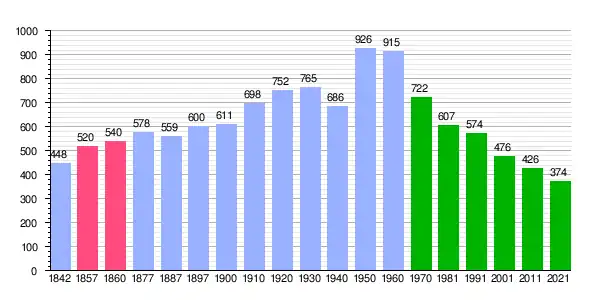 | Gráfica de evolución demográfica de Martín del Río[4][5] entre 1842 y 2021 |