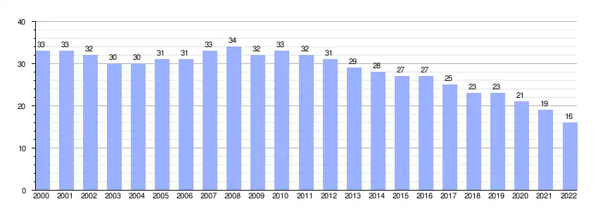| Gráfica de evolución demográfica de Martul entre 2000 y 2022 |