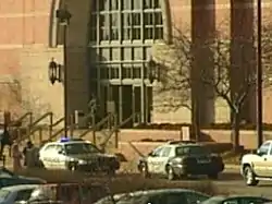![]() Vehículos policiales en la entrada del Westroads Mall | ||