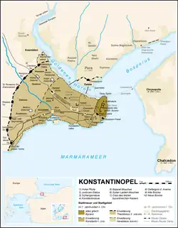 Por otro lado, el enfrentamiento con unos teóricos aliados, ambos en lucha contra la invasión de los turcos musulmanes, dejaba una herida difícil de cicatrizar. Durante su reinado, el emperador bizantino Andrónico II Paleólogo había aplicado una drástica reducción del gasto público destinado a fines militares y la flota naval bizantina había quedado reducida a la mínima expresión. A resultas de esto, las municiones, el traslado de tropas y el envío de suministros quedarían bajo el control de los genoveses. Además, el poder de la República de Génova en el Mediterráneo Oriental era descomunal,[4] con colonias comerciales y presidios repartidos por toda Grecia, el Ponto y Palestina.