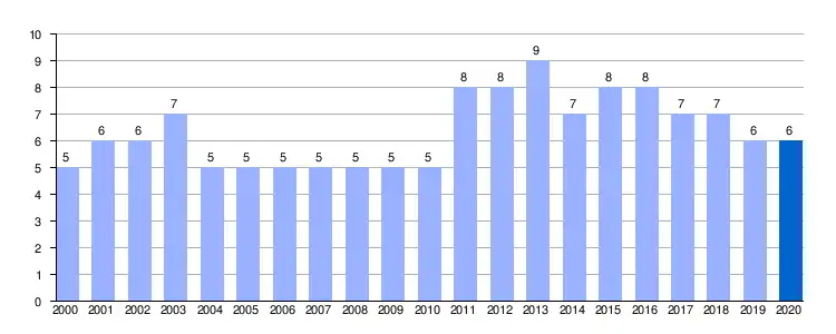 | Gráfica de evolución demográfica de Matabuena entre 2000 y 2020 |
