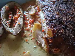Puede cocinarse haciéndolo hervir, y en ese caso se enrolla en un paño, aunque también puede ser al horno o asado a la parrilla.