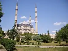 La Mezquita de Selim en Edirne, Turquía, fue construido por Sinan para proporcionar un espacio donde el mihrab pudiera verse desde cualquier lugar dentro del edificio. El gran espacio central está dispuesto, en consecuencia, como un octágono, formado por ocho pilares enormes y coronado por una cúpula circular de 31,25 metros (102,5 pies) de diámetro y 43 metros (141,1 pies) de altura. El octágono se forma en un cuadrado con cuatro semicúpulas, y externamente por cuatro minaretes excepcionalmente altos, 83 metros (272,3 pies) de altura. La planta del edificio es, por tanto, un círculo, dentro de un octágono, dentro de un cuadrado.[80]