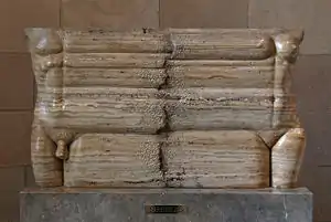 La escultura fue realizada con travertino en 1980-1981 y fue ofrecida por el autor a la Casa de la Ciudad de Barcelona en 1984, donde permanece expuesta en una pequeña sala del Vestíbulo, cerca de la Escalera de Honor.