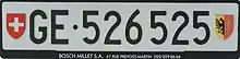 Las matrículas de Suiza tienen un diseño rectangular. La placa trasera y delantera tienen el fondo blanco con caracteres negros. Las matrículas empiezan con dos letras, que representan al cantón, y números (sin ceros a la izquierda). En la placa trasera se muestra el escudo tanto de Suiza (a la izquierda) como del cantón (a la derecha). En la delantera no se muestran escudos, y la placa y números son de menor tamaño.
