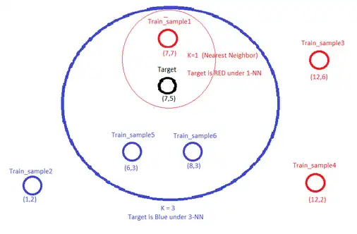 Este modelo centrado en la clasificación predice la etiqueta del objetivo en función de la matriz de distancia entre el objetivo y cada una de las muestras de entrenamiento para determinar el número K de muestras que son las más cercanas al objetivo.