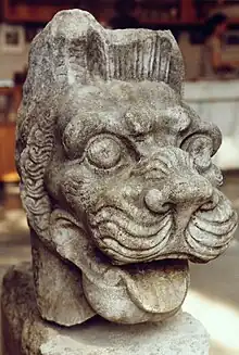 De la ornamentación del techo se conservan figuras de caballos, vasijas y grifos leoninos. En cada esquina, un par de caballos, uno frente a otro y entre ellos, probablemente estuviese un caballerizo. Los grifos leoninos siguen el modelo ideal de los persas. Sin embargo, poco ha sobrevivido del techo del mausoleo.[15] El mausoleo de Antíoco II pudo haber sido una pirámide escalonada con un remate que lo coronara en lo alto.[15] Los bloques del arquitrabe exterior llevaban esta inscripción griega: