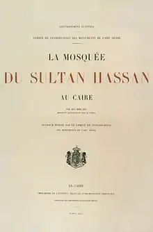 - Con el propósito de lanzar una especie de campaña de medios que ayudara a la reconstrucción de uno de los más importantes monumentos de El Cairo y tal vez del mundo islámico, en 1899 publicó una monografía sobre la mezquita Sultan Hasan (757-764/1356-1362):