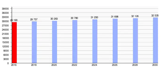 En el censo de población y vivienda realizado por el Instituto Nacional de Estadística Geografía e Informática (INEGI) en el año 2020, registró un población de 28,550 habitantes.