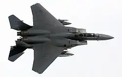 El McDonnell Douglas F-15 Eagle es un caza todo tiempo bimotor diseñado por la compañía estadounidense McDonnell Douglas (desde 1997 integrada en Boeing) para ganar y mantener la superioridad aérea en el combate aéreo. Está considerado como uno de los cazas modernos más exitosos, con más de 100 victorias y sin ninguna pérdida en combate aéreo cerrado.[2][3] Después de revisar las propuestas, la Fuerza Aérea de los Estados Unidos seleccionó el diseño de McDonnell Douglas en 1967 para satisfacer las necesidades del servicio de un caza de superioridad aérea puro y ha sido el principal avión de combate de la misma. Su primer vuelo se realizó en julio de 1972,[4] y entró en servicio en 1976. El Eagle también fue exportado a Israel, Japón y Arabia Saudita. A pesar de ser concebido originalmente como un caza puro, el diseño resultó ser lo suficientemente flexible para que posteriormente se desarrollara un derivado biplaza de ataque todo tiempo, el F-15E Strike Eagle, que entró en servicio en 1989. La Fuerza Aérea de los Estados Unidos pretende mantener en servicio al F-15 Eagle hasta el año 2025.[5]