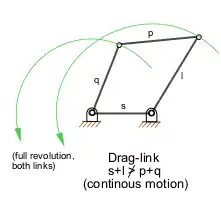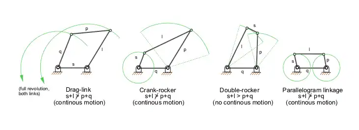 Donde: S = longitud del eslabón más corto L = longitud del eslabón más largo P = longitud de un eslabón restante Q = longitud de otro eslabón restante