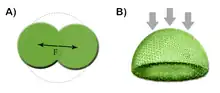 Para valores inferiores al punto crítico , relación esférica o semiesférica), se observa una relación lineal puesto que la célula se deformará a volumen constante. Por encima de este valor crítico ( ) se puede distinguir: