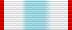 La medalla está conectada con un ojal y un anillo a un bloque pentagonal cubierto con una cinta muaré de seda gris con una franja longitudinal gris oscuro en el medio y una franja roja en los bordes.[3]