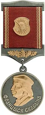 La medalla de Francysk Skaryna (en bielorruso: Медаль «Францыска Скарыны») es una condecoración estatal de la República de Bielorrusia. Fue establecida el 20 de abril de 1989 mediante el decreto n.º 2675-Xl del Sóviet Supremo de la RSS de Bielorrusia.[1] Se otorga por logros excelentes en la actividad profesional, contribución personal significativa al desarrollo y aumento del potencial espiritual e intelectual y el patrimonio cultural del pueblo bielorruso.[2]