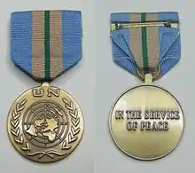 - «Medallas de las Naciones Unidas. Naciones Unidas, mantenimiento de la paz». un.org. Organización de las Naciones Unidas. Consultado el 6 de diciembre de 2012.