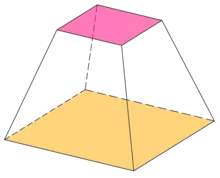 Un tronco de una pirámide de base cuadrada, con un volumen igual a la altura multiplicada por la media heroniana de las bases cuadradas